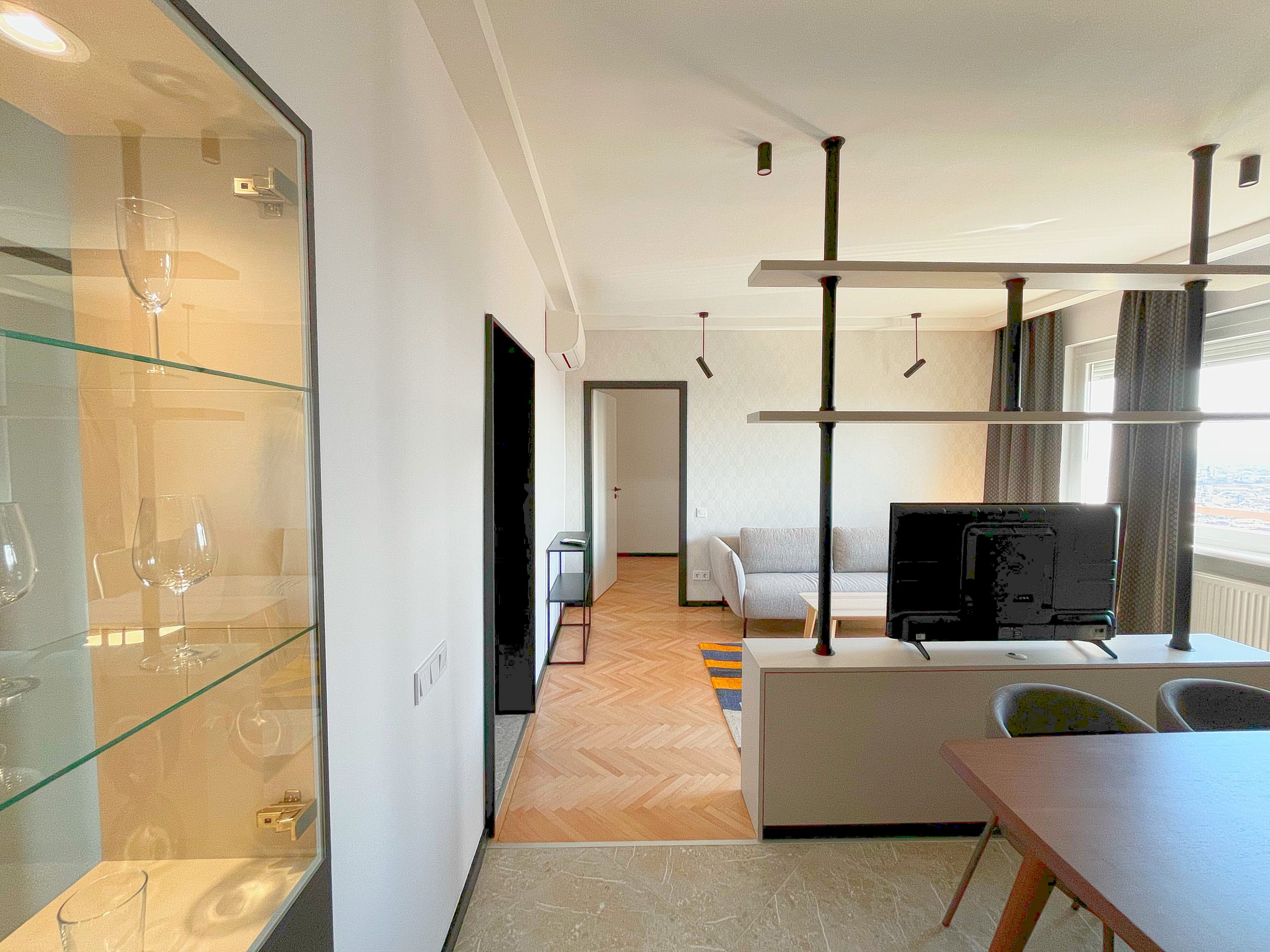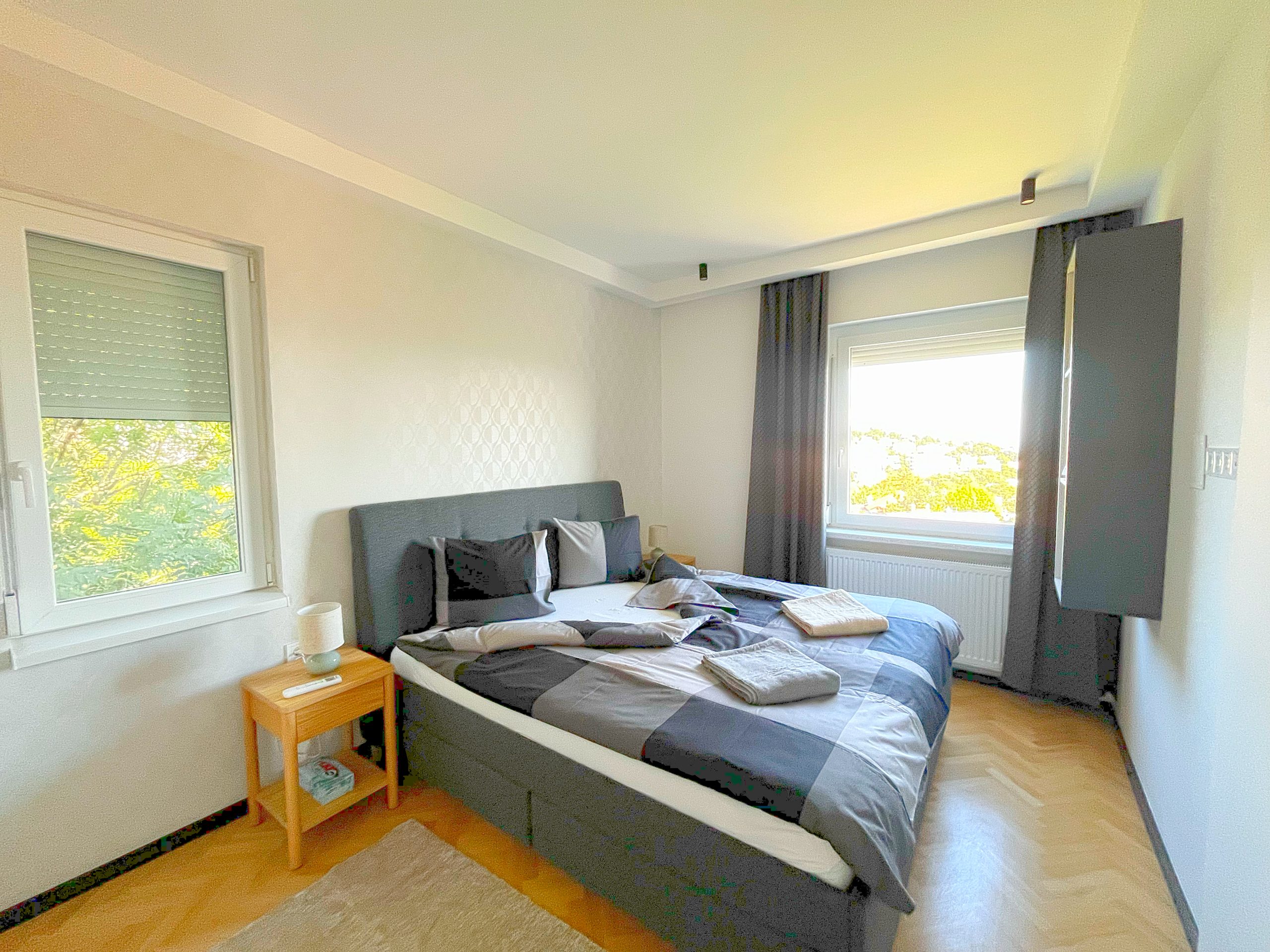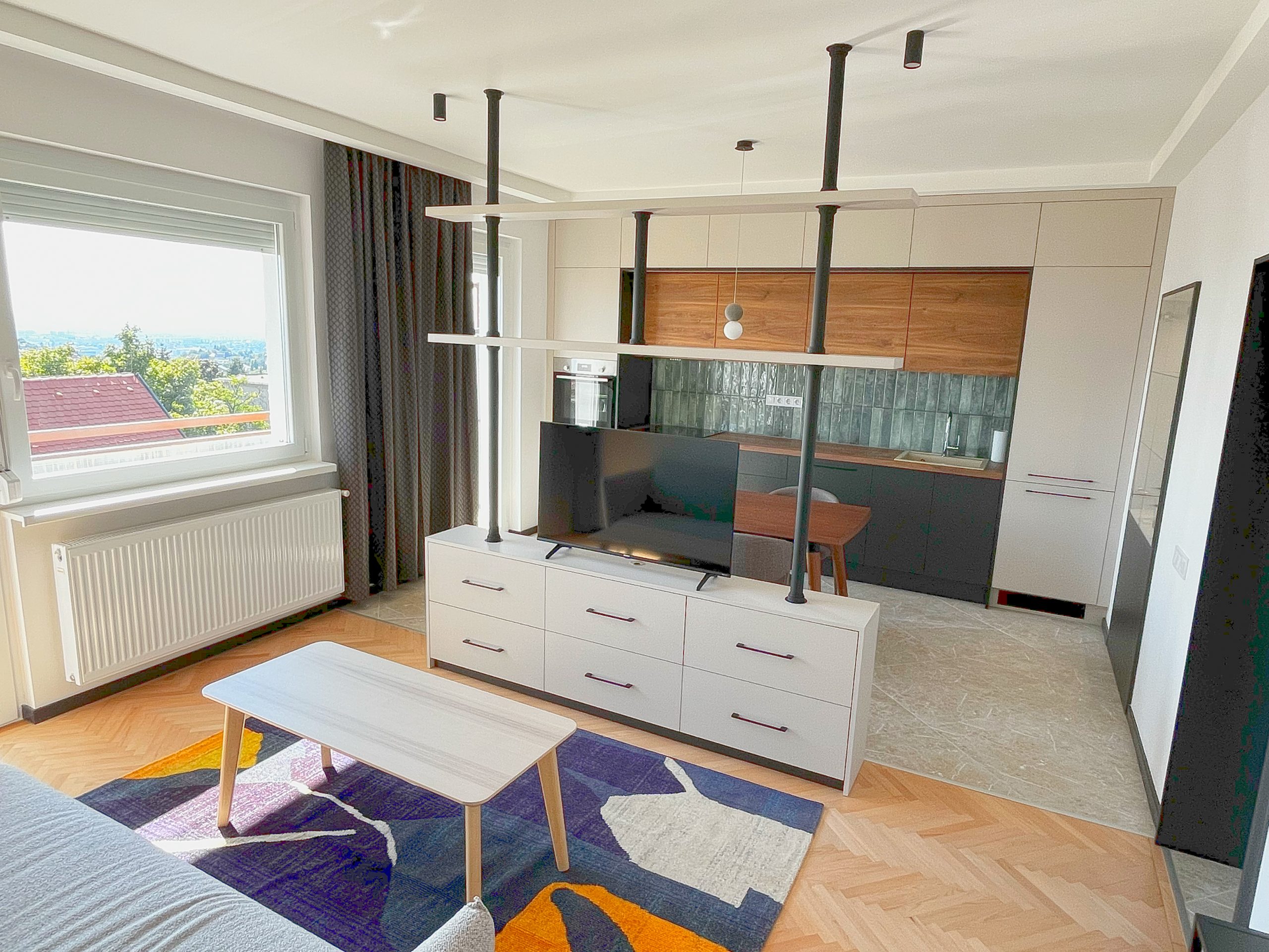 Modern kéthálószobás lakás kivételes panorámával a XII. kerületben. A terek újraszervezése, átalakítása és bútorozás után ilyen lett a végeredmény.